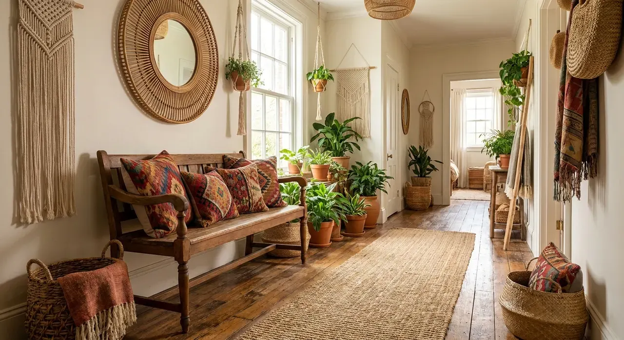De ware magie en diepgang van een Bohemian hal zit in de zorgvuldig gekozen details, de kleine elementen die de ruimte persoonlijkheid en een onmiskenbare diepte geven.