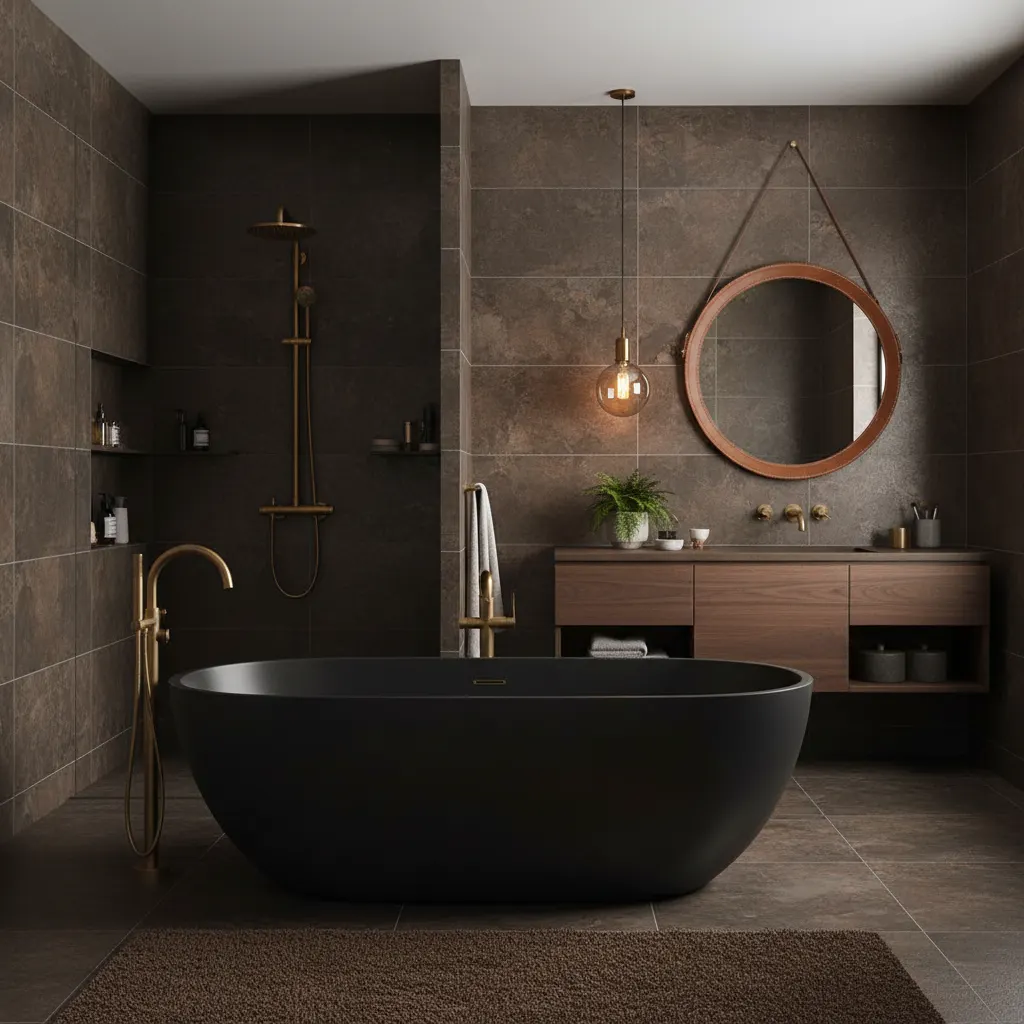 - Niet durven combineren met andere stijlen: Hoewel Bold Coffee op zichzelf staat, kan het prachtig samengaan met elementen van gerelateerde stijlen zoals Japandi voor extra rust en functionaliteit, of Wabi-Sabi voor een meer organische, imperfecte schoonheid. Durf te mixen en matchen om een unieke, persoonlijke badkamer te creëren.