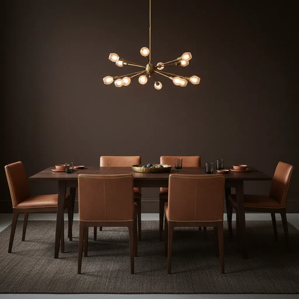 - Verkeerde verlichting: Alleen functionele plafondverlichting doodt de sfeer. De Bold Coffee eetkamer vraagt om gelaagde verlichting: een statement hanglamp, sfeervolle vloer- en tafellampen, en dimmers om de intensiteit aan te passen. Te koud licht (wit of blauw) zal de warme tinten tenietdoen. Kies voor warm wit licht (rond de 2700K).